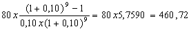 valor presente do item b, com 9 anos em lugar de 10, e uma taxa de 10%