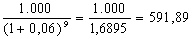 1.000,00 a serem pagos daí a 9 anos, a 6% a.a., é: