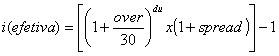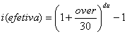 A formula de cálculo da taxa “over”, dada uma taxa efetiva de juros, pode ser desenvolvida da seguinte forma: