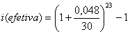 Sabendo que no período de referência dessa taxa existem 22 dias úteis, a taxa efetiva é obtida