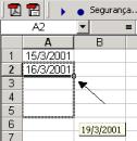 Escreva na data 2; marque ambas as células |