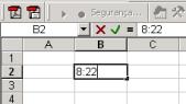 Horas, minutos, etc. também podem ser digitados numa célula. Na célula abaixo, digitamos 8:22: