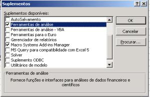 Estas duas funções calculam a taxa interna de retorno e o valor presente líquido para uma série de fluxos de caixa recebidos numa data específica. Eles são especialmente úteis para se calcular IRR e NPV quando as datas são desigualmente espaçadas. Se você não tiver estas funções, você terá de ativar Ferramentas|Suplementos e daí então clicar sobre Ferramentas de: