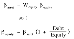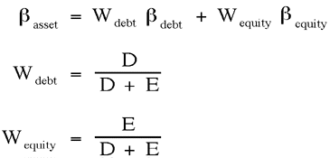 - Find the "unlevered" asset beta of industry, assuming beta of debt = 0