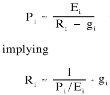 This Ri is calculated from earnings and price, not from beta, so it is an independent check on the level of systematic risk. Ri may be calculated and compared to CAPM/APT discount rate.